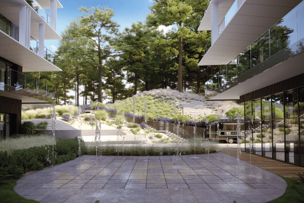 Odzyskiwana woda z opadów wesprze utrzymanie terenów zielonych na terenie hotelu.