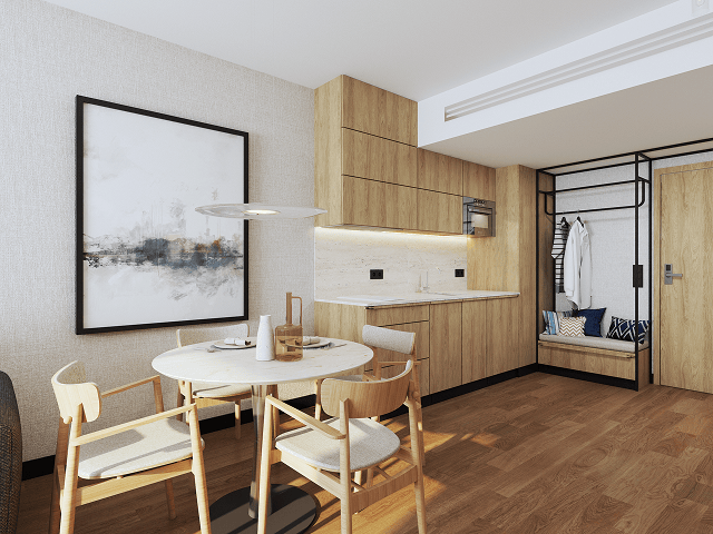 Oddajemy apartamenty w stanie pod klucz. Wysokiej jakości okładziny drewnopodobne ścian i łatwe w utrzymaniu tapety. Na podłodze wysokiej jakości panele winylowe w strukturze drewna. To wszystko uzupełnione zabudową kuchenną i szafami wnękowymi na wymiar oraz czyli już następnego dnia są one do dyspozycji Właściciela i trafiają do puli apartamentów wynajmowanych przez operatora.